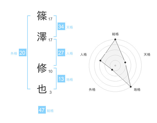 篠澤 修也さんを姓名の画数から五運を鑑定