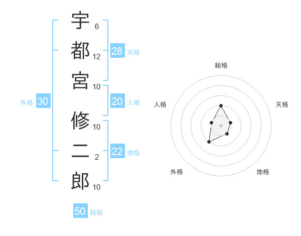 宇都宮 修二郎さんの名前の鑑定結果は!