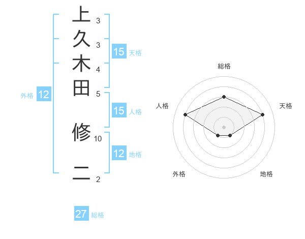 上久木田 修二さんの総格は27画の3点!