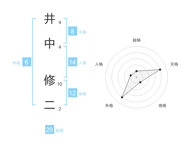 井中 修二さんの天格は8画の4点!
