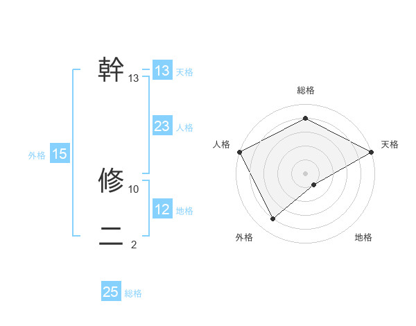 幹 修二さんの天格は13画の5点!