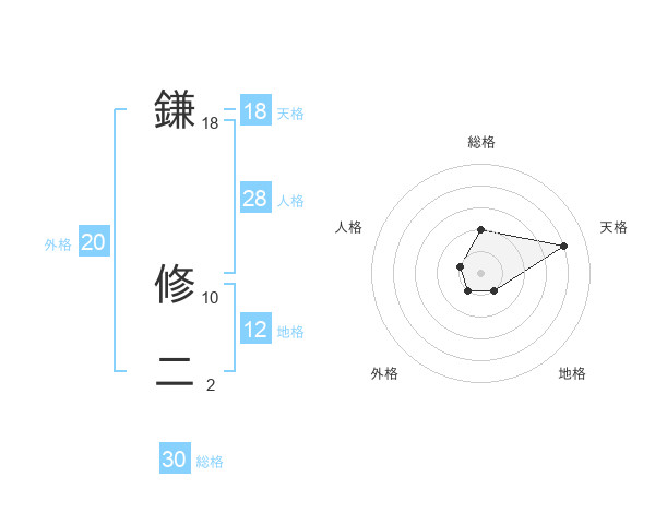 鎌 修二さんの天格は18画の4点!