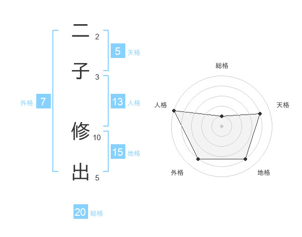 二子 修出さんの総格は20画の1点!