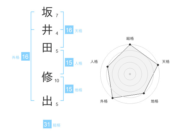 坂井田 修出さんを姓名の画数から五運を鑑定