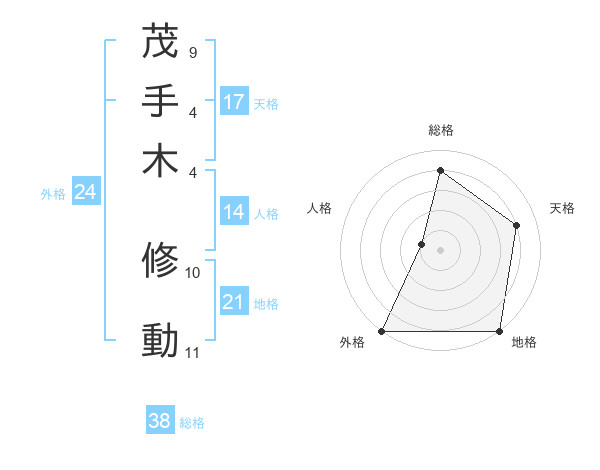 茂手木 修動さんを姓名の画数から五運を鑑定