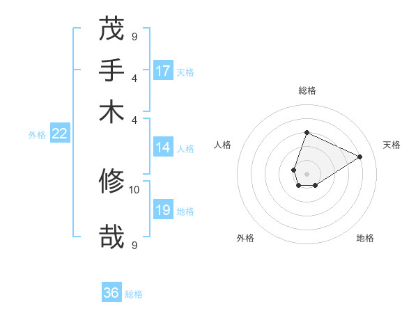 茂手木 修哉さんを姓名の画数から五運を鑑定