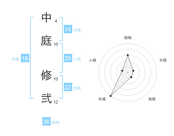 中庭 修弐さんを姓名の画数から五運を鑑定