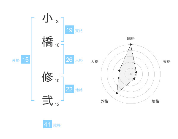 小橋 修弐さんを姓名の画数から五運を鑑定