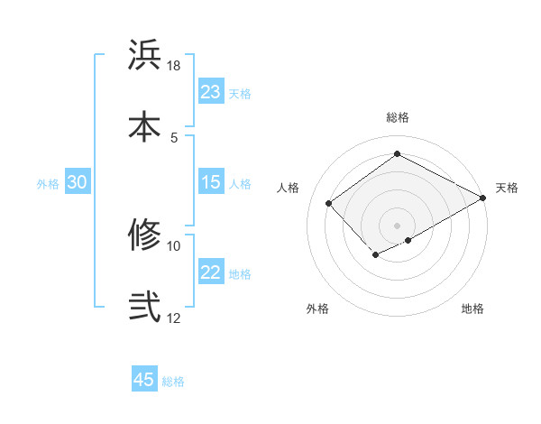 浜本 修弐さんを姓名の画数から五運を鑑定