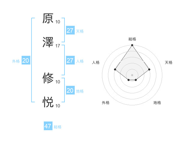 原澤 修悦さんの総格は47画の5点!