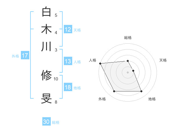 白木川 修旻さんを姓名の画数から五運を鑑定
