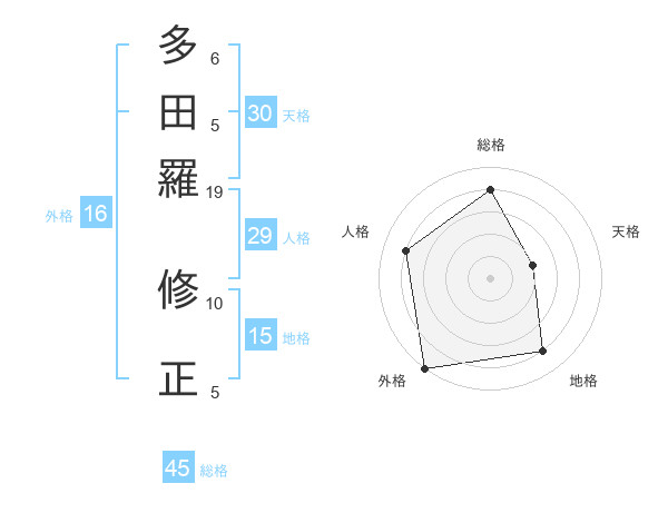 多田羅 修正さんを姓名の画数から五運を鑑定