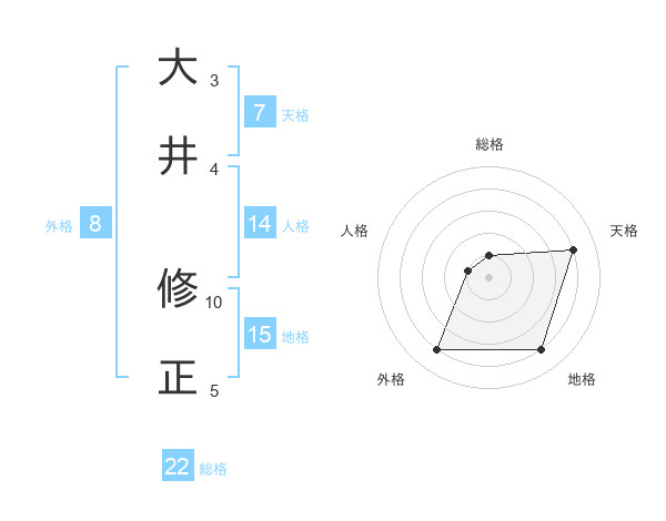 大井 修正さんの総格は22画の1点!