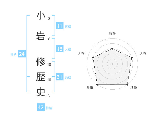 小岩 修歴史さんの総格は42画の3点!