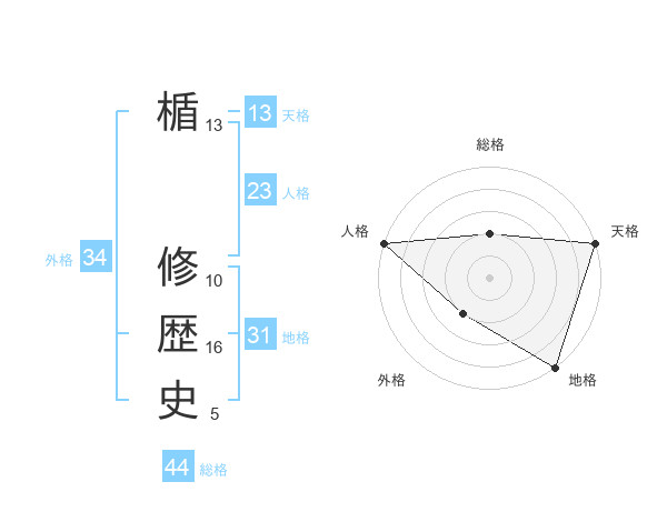 楯 修歴史さんを姓名の画数から五運を鑑定