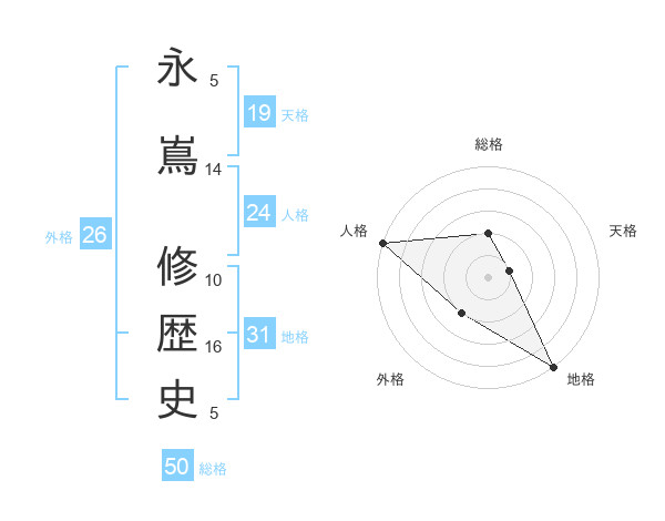 永嶌 修歴史さんを姓名の画数から五運を鑑定