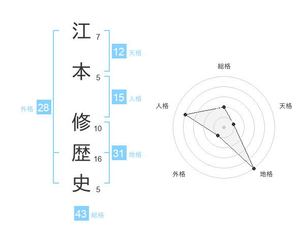 江本 修歴史さんを姓名の画数から五運を鑑定