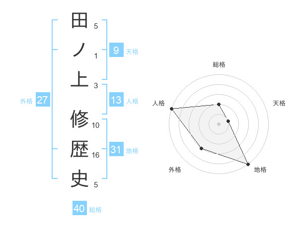田ノ上 修歴史さんの総格は40画の2点!