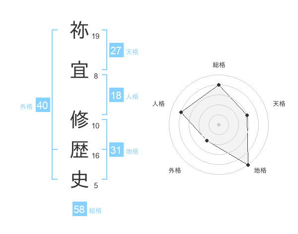 祢宜 修歴史さんの総格は58画の4点!