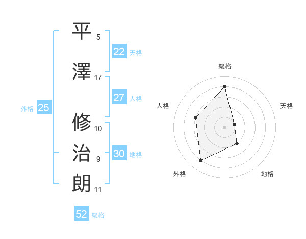 平澤 修治朗さんを姓名の画数から五運を鑑定