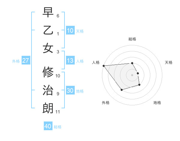 早乙女 修治朗さんを姓名の画数から五運を鑑定
