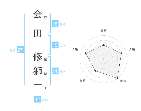 会田 修獅一さんを姓名の画数から五運を鑑定