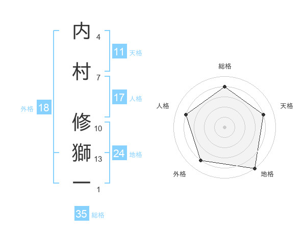 内村 修獅一さんを姓名の画数から五運を鑑定