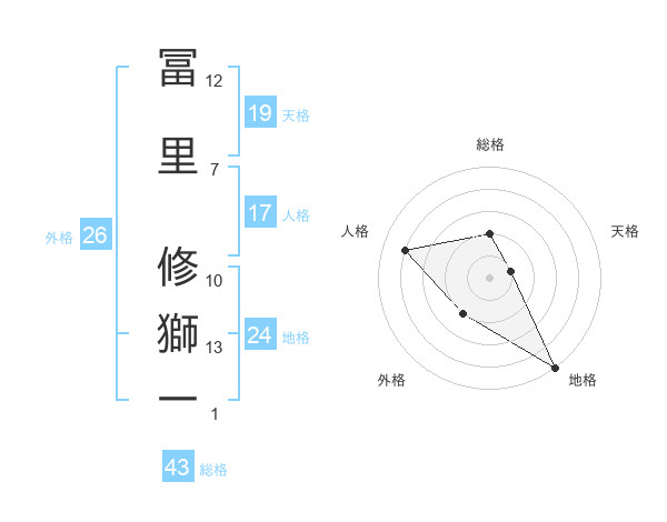 冨里 修獅一さんを姓名の画数から五運を鑑定