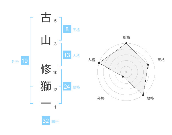 古山 修獅一さんを姓名の画数から五運を鑑定