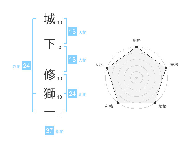 城下 修獅一さんを姓名の画数から五運を鑑定