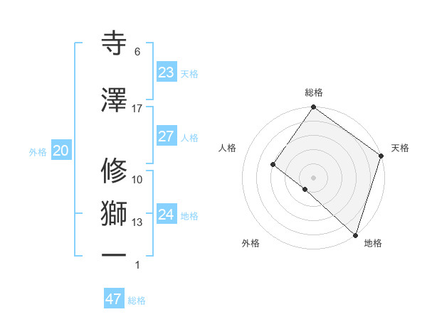 寺澤 修獅一さんを姓名の画数から五運を鑑定