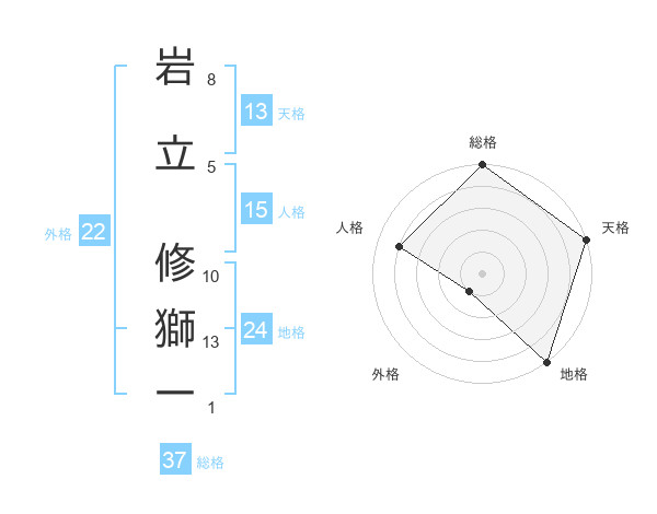 岩立 修獅一さんを姓名の画数から五運を鑑定