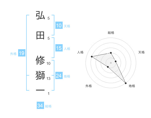 弘田 修獅一さんを姓名の画数から五運を鑑定