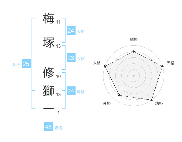 梅塚 修獅一さんの総格は48画の4点!