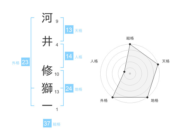河井 修獅一さんを姓名の画数から五運を鑑定
