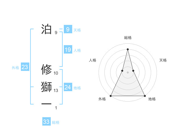 泊 修獅一さんを姓名の画数から五運を鑑定
