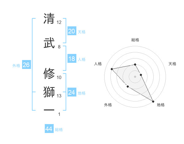 清武 修獅一さんの総格は44画の2点!
