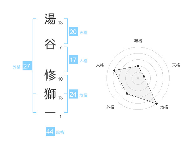 湯谷 修獅一さんを姓名の画数から五運を鑑定