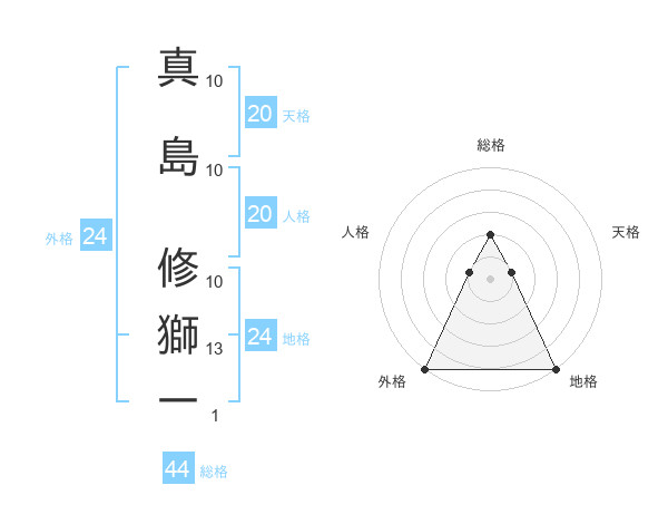 真島 修獅一さんを姓名の画数から五運を鑑定