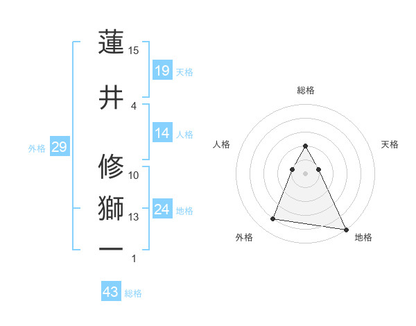 蓮井 修獅一さんを姓名の画数から五運を鑑定