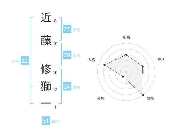 近藤 修獅一さんを姓名の画数から五運を鑑定