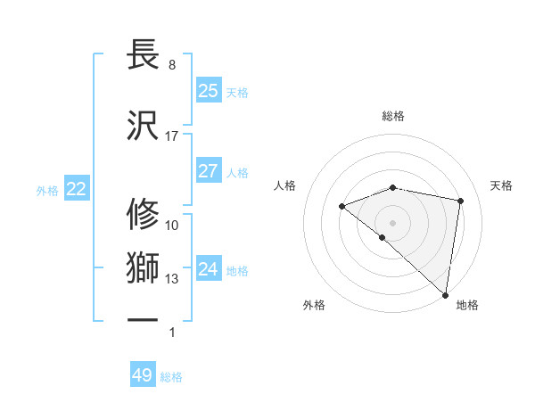 長沢 修獅一さんを姓名の画数から五運を鑑定