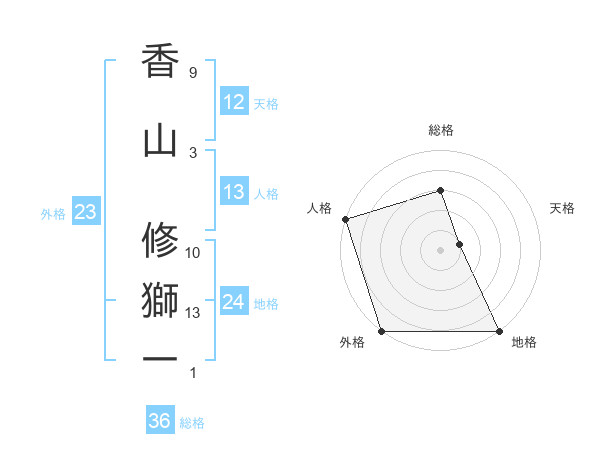 香山 修獅一さんを姓名の画数から五運を鑑定
