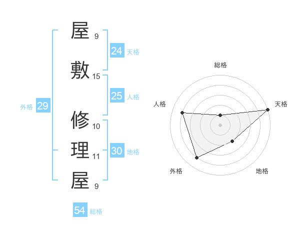 屋敷 修理屋さんを姓名の画数から五運を鑑定