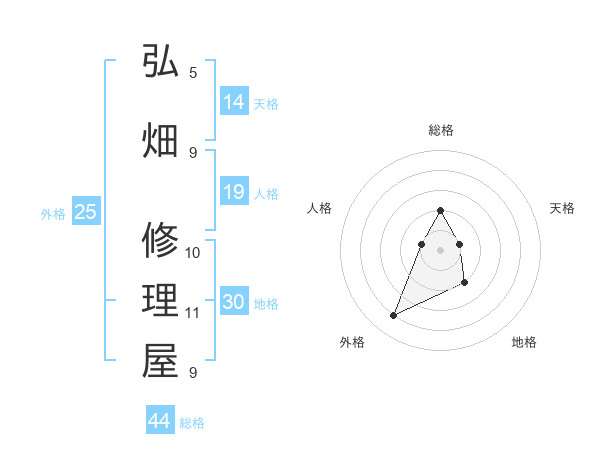 弘畑 修理屋さんの総格は44画の2点!