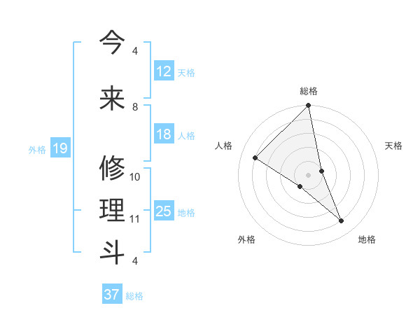 今来 修理斗さんを姓名の画数から五運を鑑定