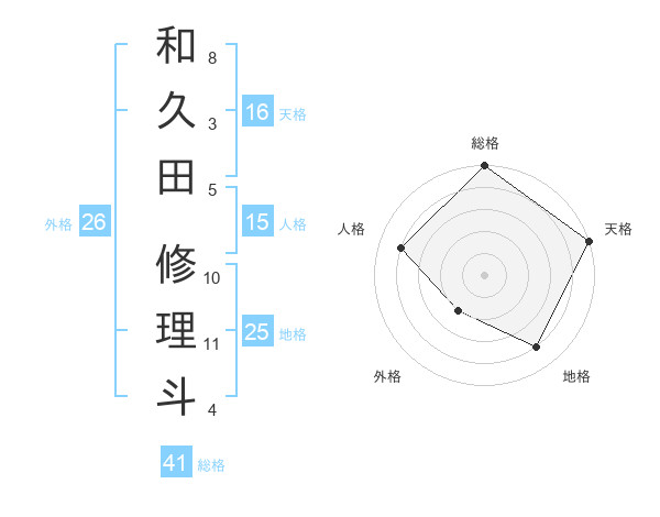 和久田 修理斗さんを姓名の画数から五運を鑑定