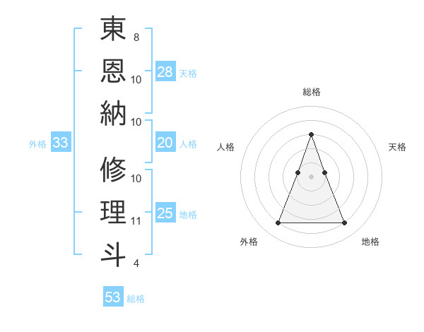 東恩納 修理斗さんの総格は53画の3点!