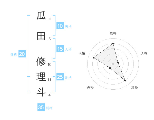 瓜田 修理斗さんを姓名の画数から五運を鑑定