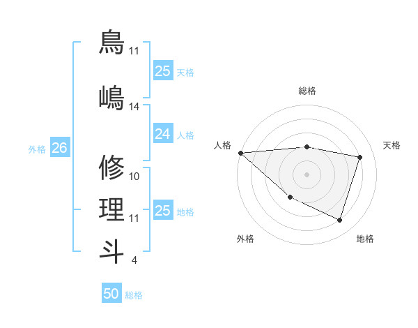 鳥嶋 修理斗さんを姓名の画数から五運を鑑定